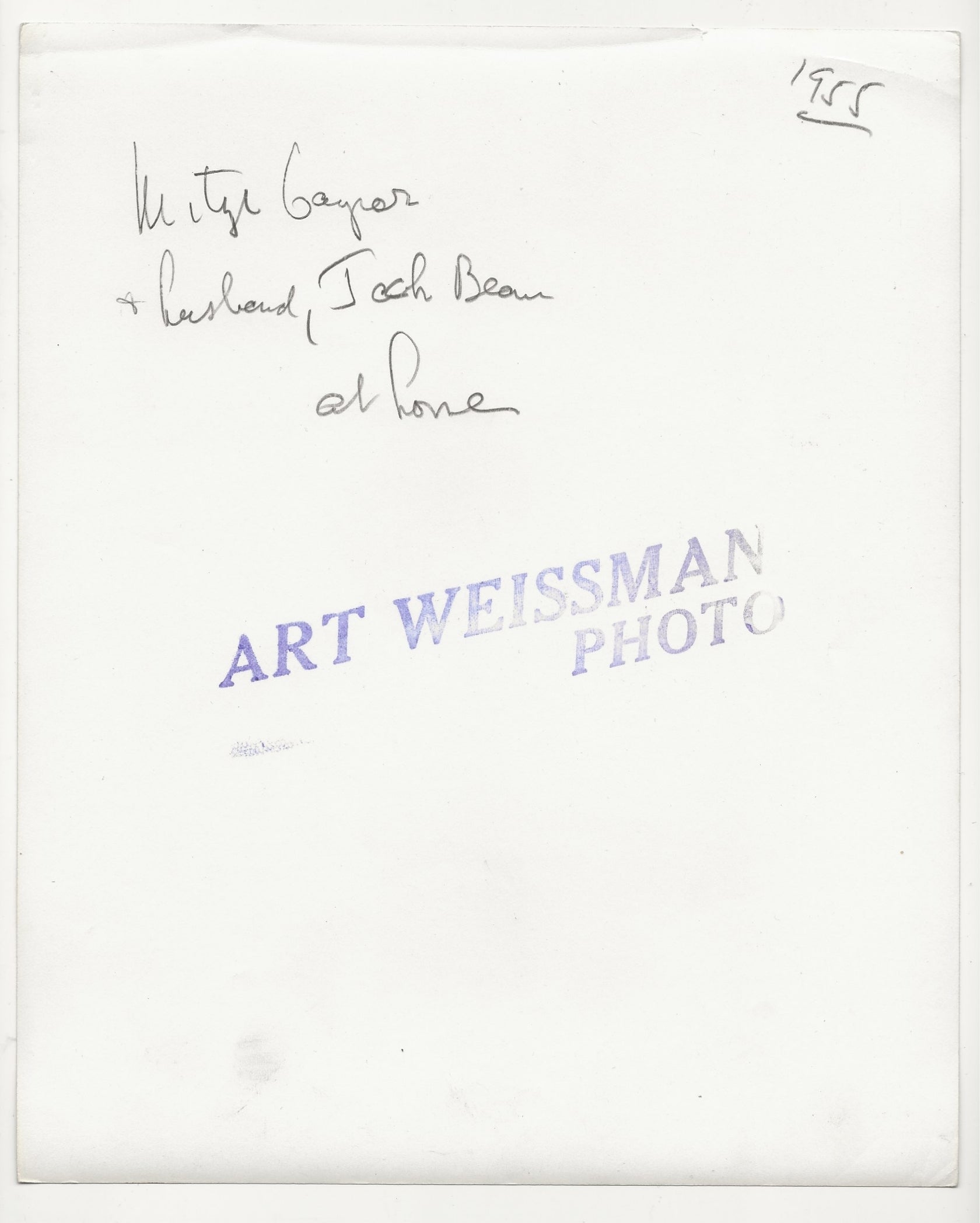 | Photographer | Art Weissman Photo (Large purple ink stamp on reverse) |